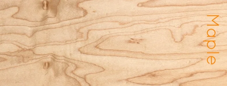 Of the lighter color woods, Maple is the most popular and with many variations in terms of color and character available there's always going to be one that you will fall in love with. Generally, hard and soft Maple will take on a very light tone even after finishing is applied. Spalted Maple has gorgeous ink-black lines that give contrast to the wood, but can be difficult to work on since it's a generally weaker wood that sometimes has to be hardened or heavily varnished. Ambrosia Maple is characterized by beautiful patterns of gray-blue-brown streaks.