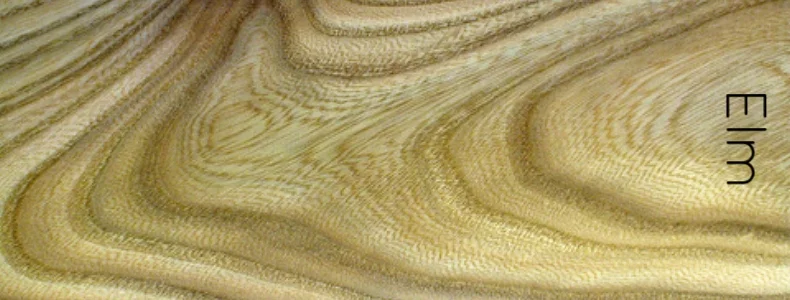 Elm is a beautiful, light-colored wood that is durable and often has some amazing figuring. When finished it can take on some lovely golden brown colors that's contrasted against some creamy sapwood. It is a favorite among furniture makers, but over the years Dutch elm disease has devastated a significant number of these trees in North America and Europe. Elm Burls are very rare and as a result pricey, but the figuring and grain patterns can be spectacular. We don't work on many Elms but when we do we are never disappointed with how beautiful the wood is.